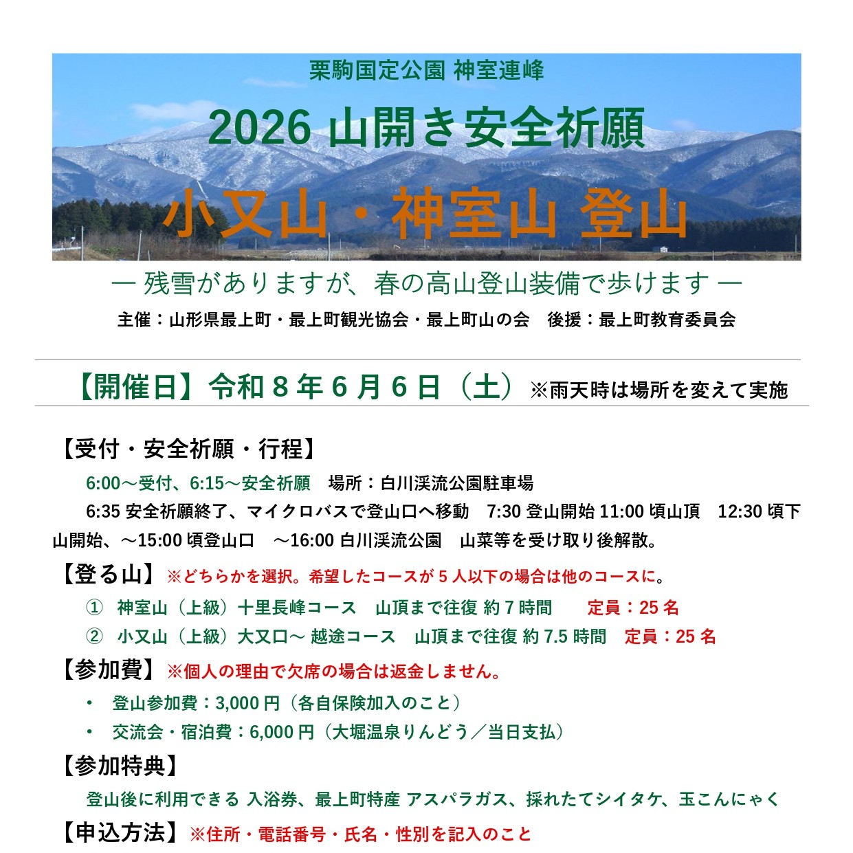 🆕イベント情報 「2026 神室連峰山開き安全祈願・神室山登山&小又山登山」開催