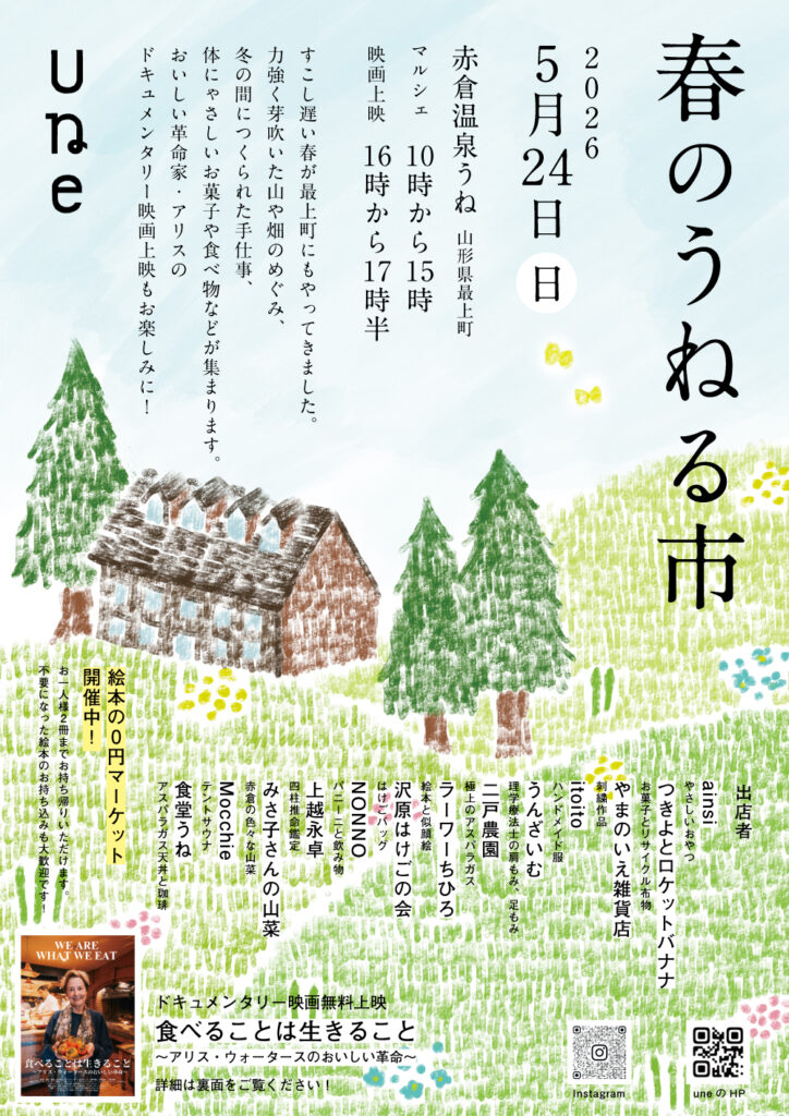 冬の間につくられた手仕事、力強く芽吹いた山や畑のめぐみ、体にやさしいお菓子や食べ物などが一堂に集まります。